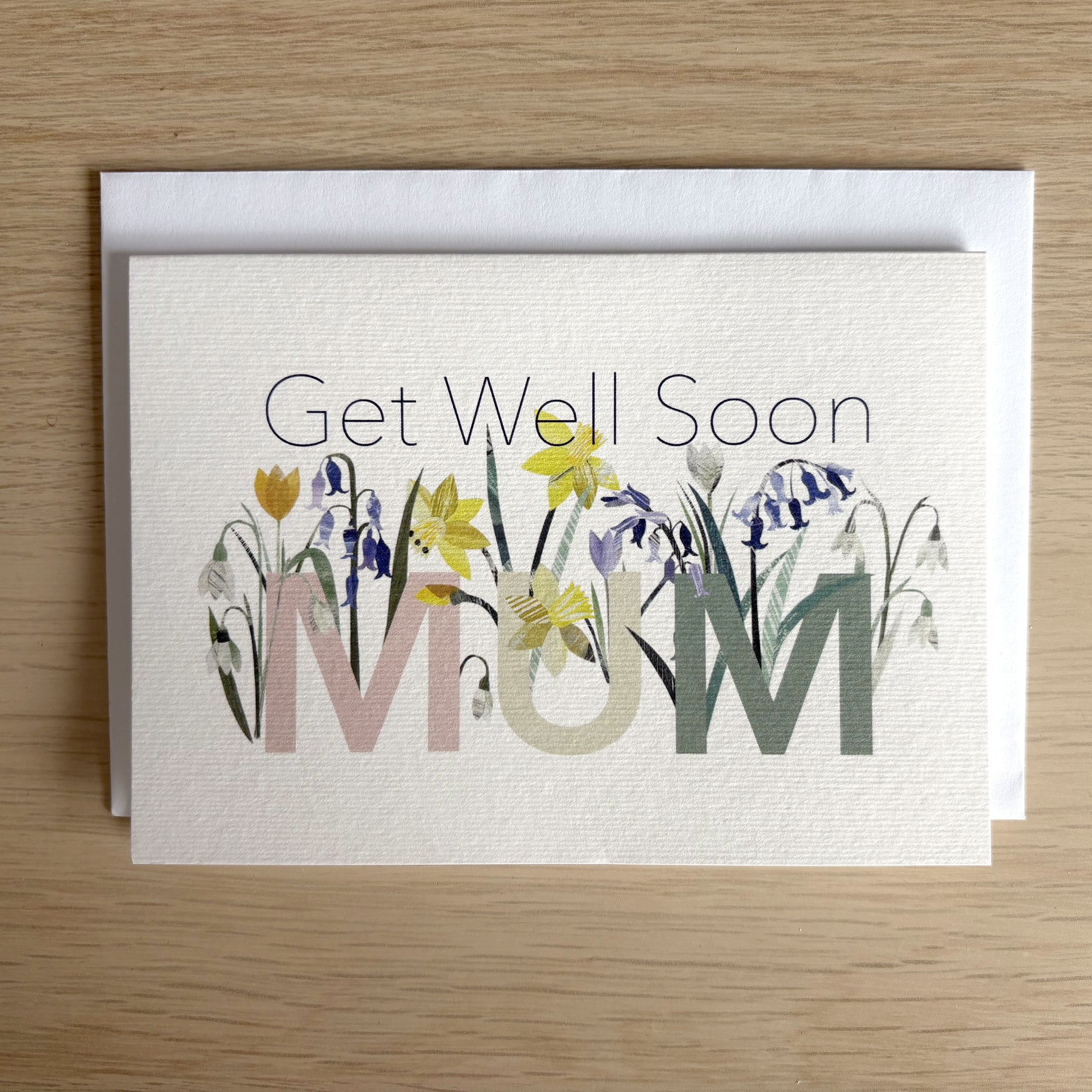 This Get Well Soon Card for Mum features pretty little Spring Flowers including Daffodils, Bluebells, Snowdrops and Crocus. This cheerful card will bring a smile to your mums face when she is not feeling her best. It is left blank inside so you can write your own message.